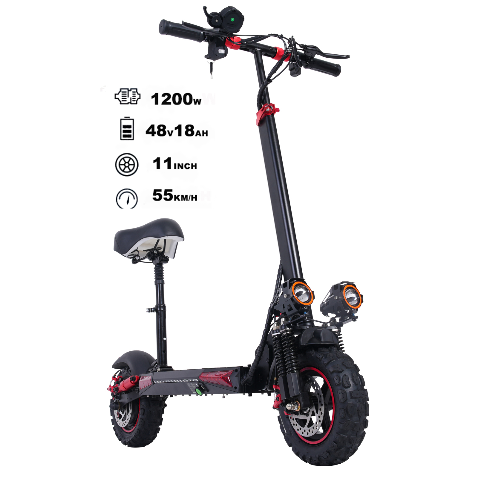 Черный красный двойной инструмент для бездорожья электрический скутер: сильный удар для катания