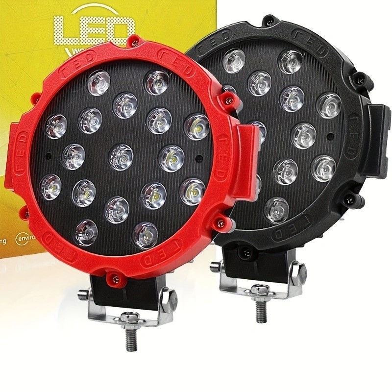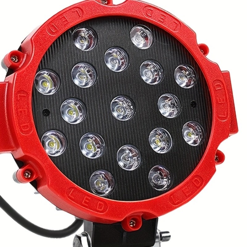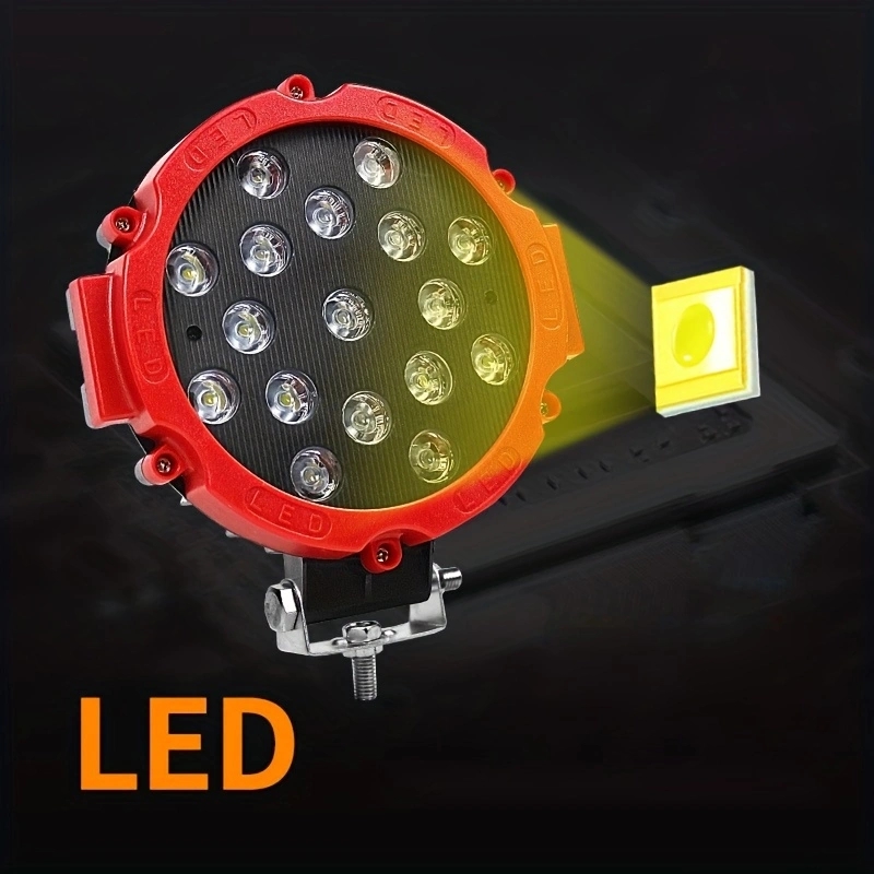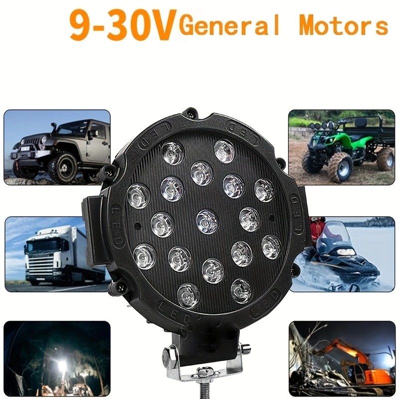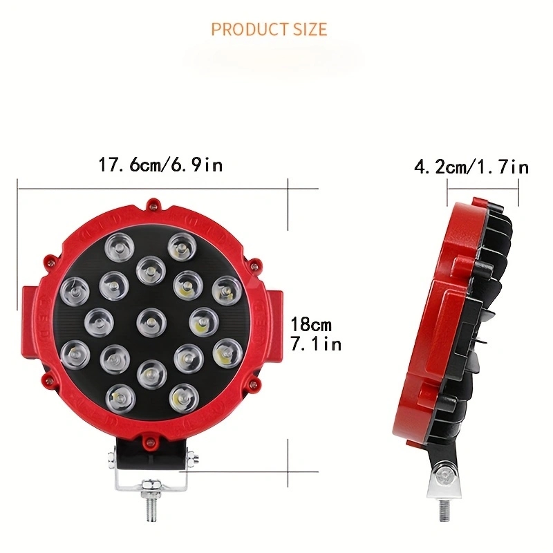 Material: Aluminum +LED Working voltage: DC9-30V LED chip: 3030LED LED power: 51W Measured current: 2.0A±0.2 Lumen value: 3400LM Color temperature: 6500K Light type: Concentrating light Waterproof rating: IP67 Working life: 50000H Operating temperature: -40℃-85℃ Applicable: Car/motorcycle/off-road vehicle/truck/forklift/ATV/engineering vehicle/boat