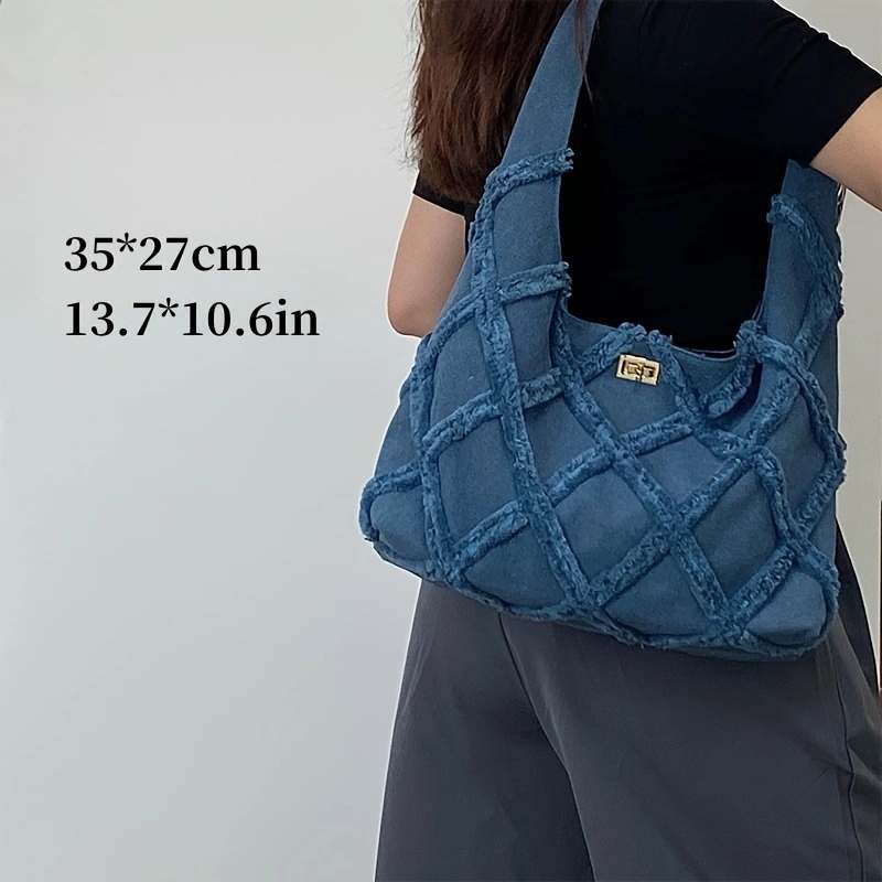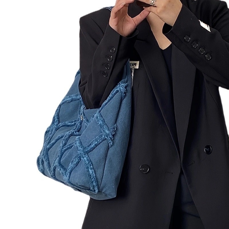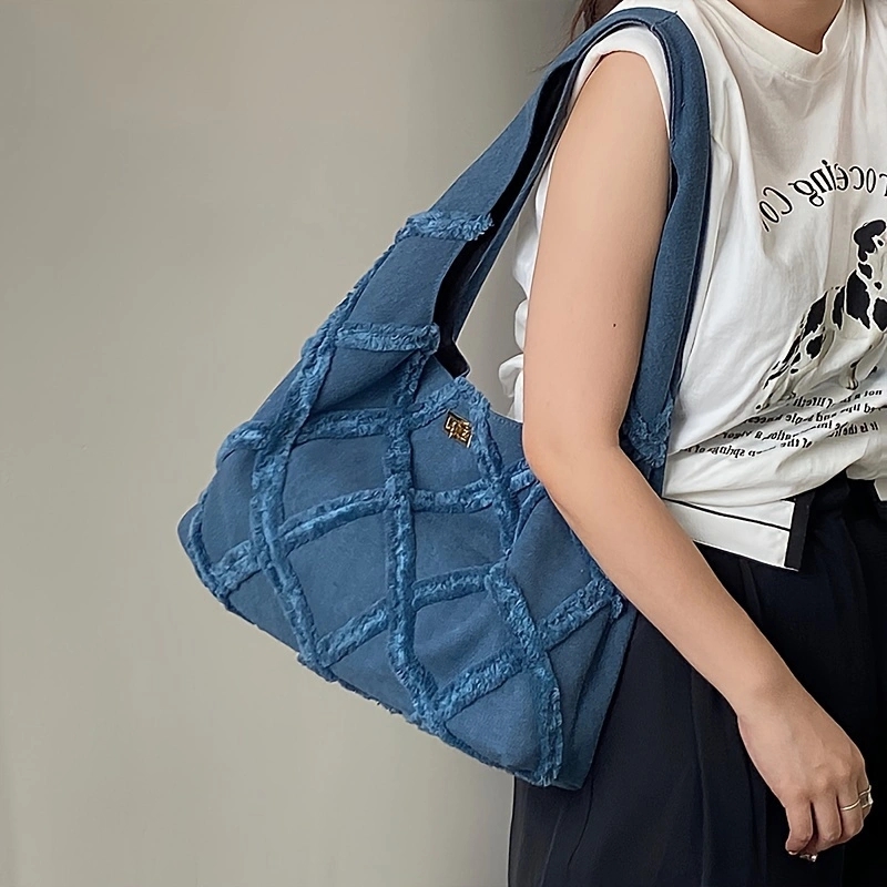 Trendy denim canvas shoulder bag Women's personalized street fringe large capacity casual Tote bag