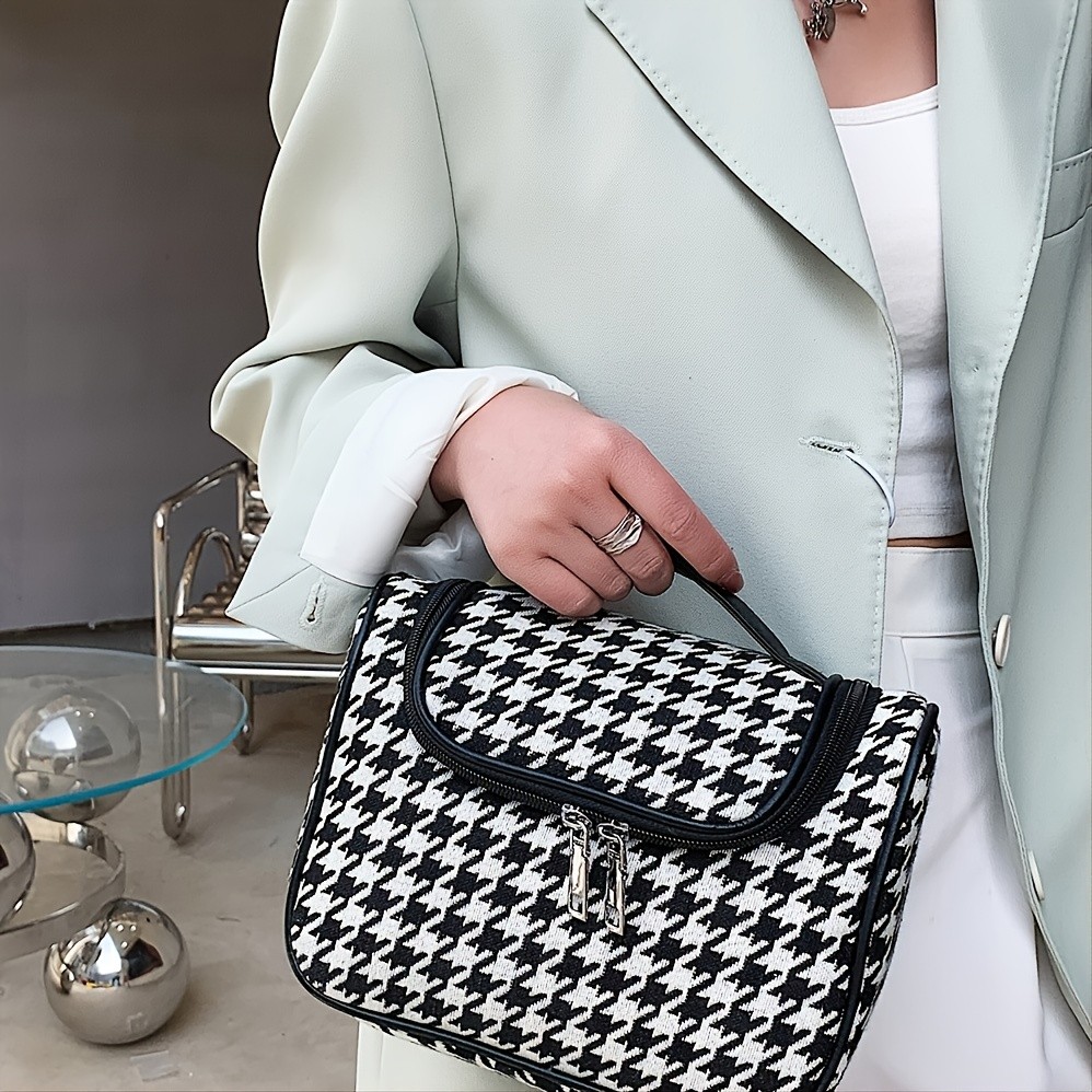 包包女新款千鸟格简约时尚超大容量洗漱包收纳包手提化妆包