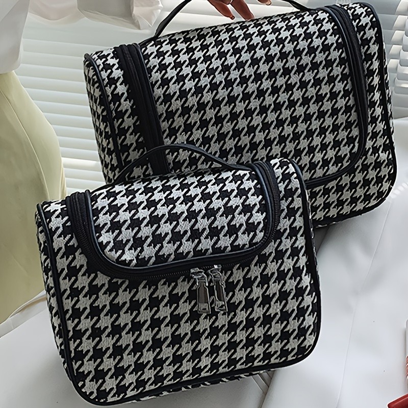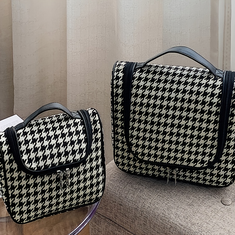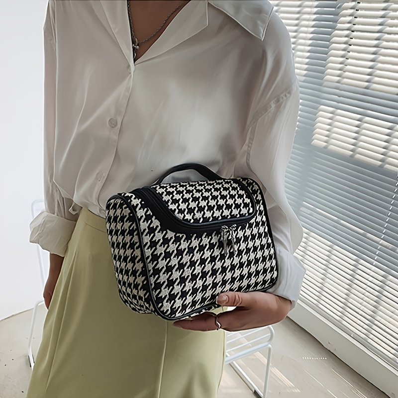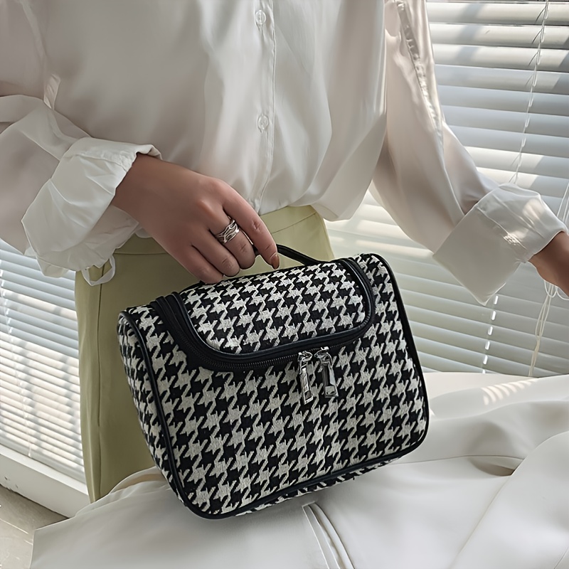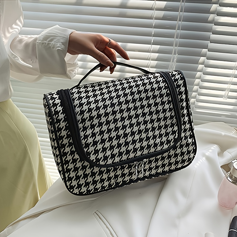 包包女新款千鸟格简约时尚超大容量洗漱包收纳包手提化妆包