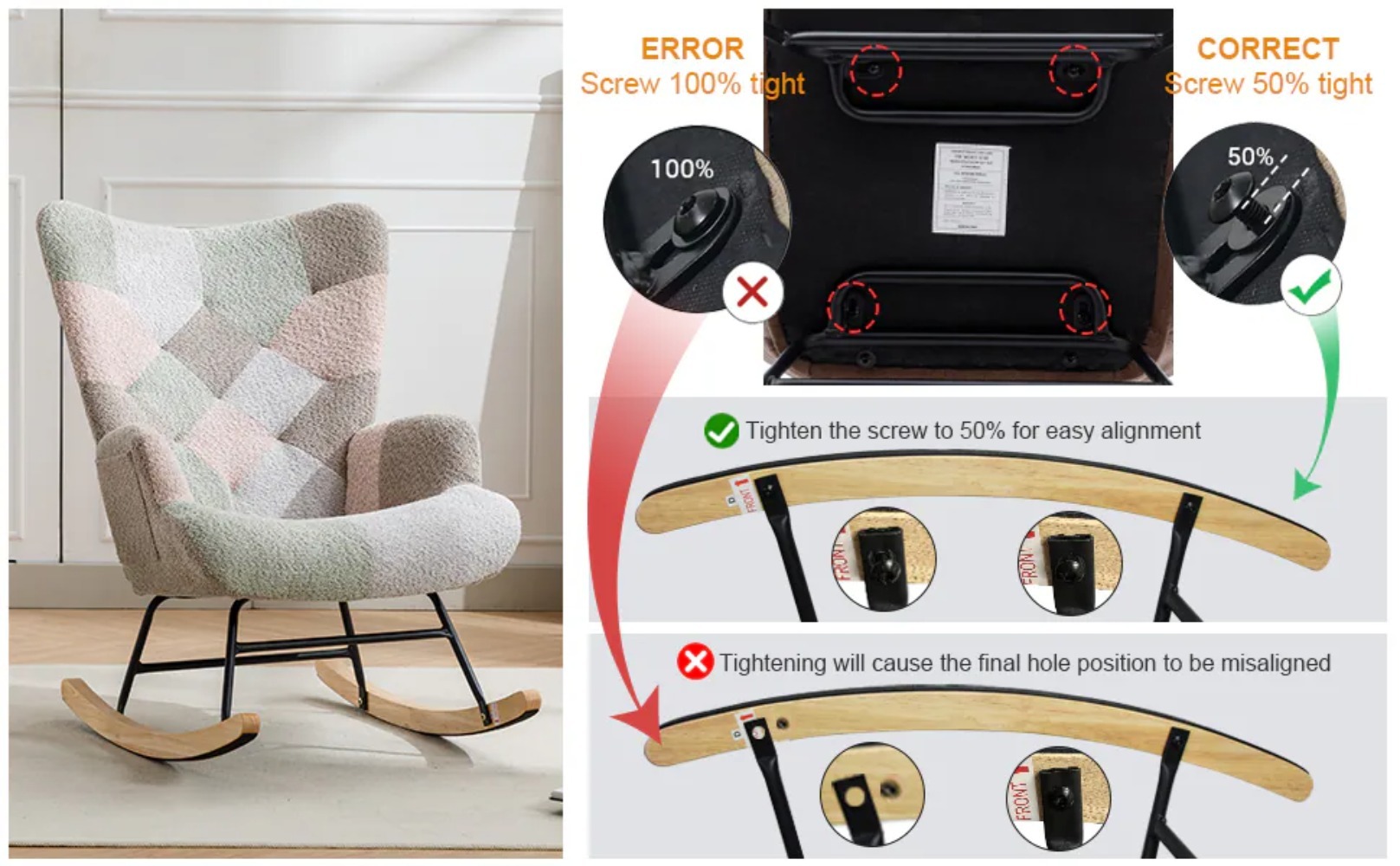 现代拼接装饰椅,配有实木扶手和底座,具有中世纪现代风格的装饰沙发,客厅卧室工作室用布艺沙发椅,舒适的床边扶手椅,(玛卡罗尼)