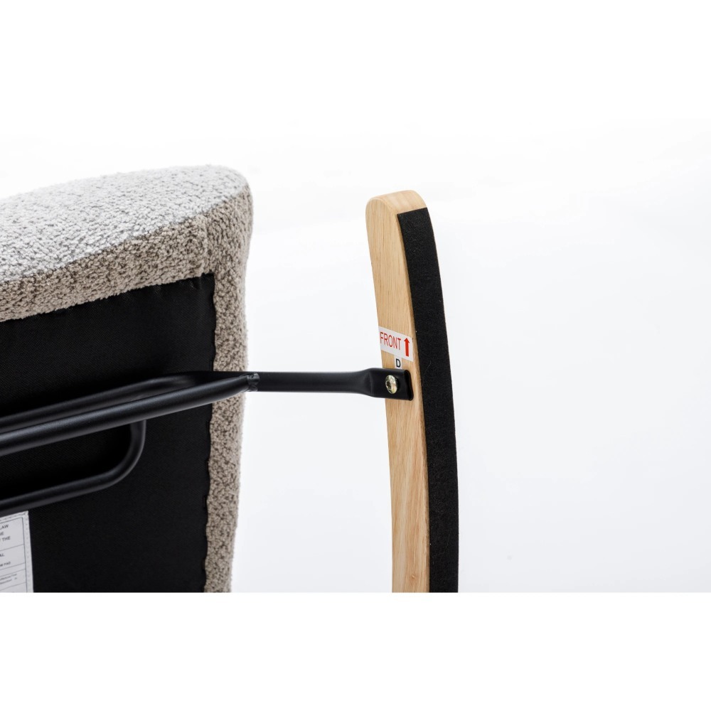 Modern Patchwork Accent Chair with Solid Wood Armrest and Feet, Mid-Century Modern Accent Sofa, Fabric Sofa Chair for Living Room Bedroom Studio, Comfy Side Armchair for Bed, (Macaroon)