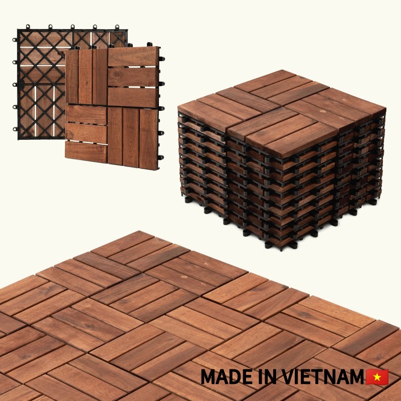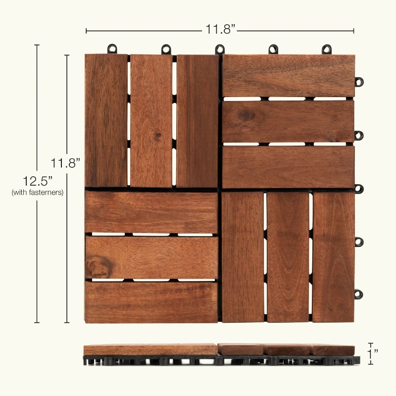 10pcs Interlocking Deck Tiles 11.8" x 11.8", Patio Flooring Outdoor Waterproof, Acacia Wood Tiles All Weather, Floor Tiles for Balcony, Backyard, Indoor and Outdoor use (Square Joint, Dark Brown)