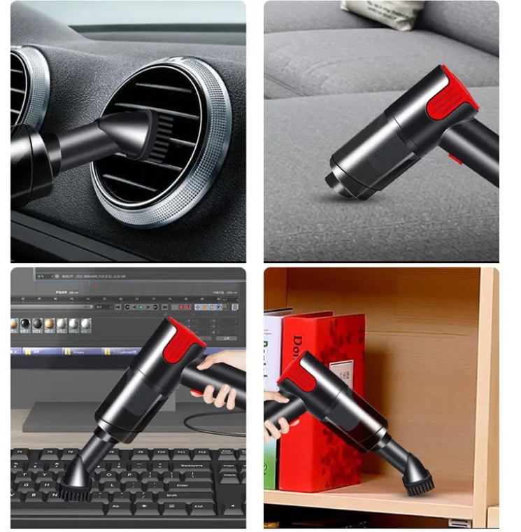 高级功能与特性: 智能传感器技术:我们的吸尘器配备了智能传感器,能够检测灰尘水平并相应地调整吸力大小,从而优化清洁效率和电池续航能力。 自动清洁刷毛的吸尘器:这款吸尘器配备了自动清洁刷毛装置,能够自动清除头发和杂物,避免堵塞,并保持最佳的吸尘性能。 应用集成:将您的吸尘器与专用移动应用程序连接,以便进行远程控制、日程安排以及实时清洁报告。 环保设计:我们的吸尘器采用可回收材料和节能部件制成,有助于营造更可持续的生活方式。 详细规格: 吸力:提供强劲的清洁效能,适用于各种地板类型以及不同程度的污垢。 过滤系统:高效空气过滤器(HEPA)和活性炭过滤器协同工作,能够捕获过敏原、尘螨、宠物皮屑以及其他微粒,从而确保室内环境更加健康。 电池续航能力:一次充电可提供长达 60 分钟的连续清洁时间,具备快速充电功能,以增加使用便利性。 噪音水平:运行时噪音低至 60 分贝,因此即使在安静时段也能正常使用。 容量:垃圾桶的容量从 0.5 升到 1.5 升不等,能够满足各种清洁需求,无需频繁倾倒。 附件:套装内容包括缝隙清洁工具、掸尘刷、内饰清洁工具、用于地毯的电动涡轮刷以及用于难以触及区域的软管。 额定电压:7.4(V) 额定输入功率:120(W) 真空吸力:6000PA(mbar) 充电方式:车载充电器(香烟盒式充电器) 附加应用场景: 汽车内饰清洁:紧凑的设计和多功能附件使得清洁汽车座椅、地板和后备箱变得轻而易举,从而确保车内环境一尘不染。 宠物美容:电动涡轮刷非常适合用于宠物美容,能够去除脱落的毛发和皮屑,从而减少过敏反应并让宠物保持舒适。 《办公室空间》:其安静的运作方式和长长的电源线使其非常适合用于保持办公室环境的清洁,同时又不会干扰日常运作。 精细表面护理:柔软的刷子和配件对精细表面(如窗帘、电子产品和精致家具)非常温和,能够防止刮痕和损坏。 存储区域:高效清洁车库、地下室和阁楼,清除灰尘、蜘蛛网和杂物,以保持存储区域整洁有序。 总之,我们的高级真空吸尘器融合了最先进的技术、多样的附件以及环保的设计,为任何家庭或工作场所提供了全面的清洁解决方案。无论是日常维护还是深度清洁任务,我们的真空吸尘器都能确保营造出洁净且健康的环境,使其成为现代生活中不可或缺的工具。