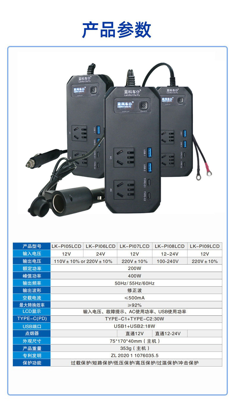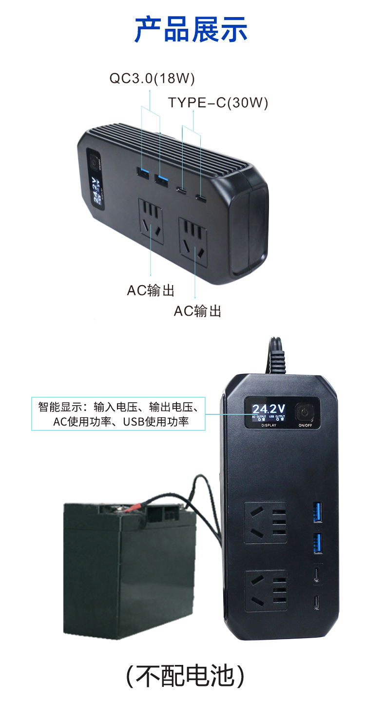 车载逆变器转换器插头12v电源插座点烟器汽车快充逆变器