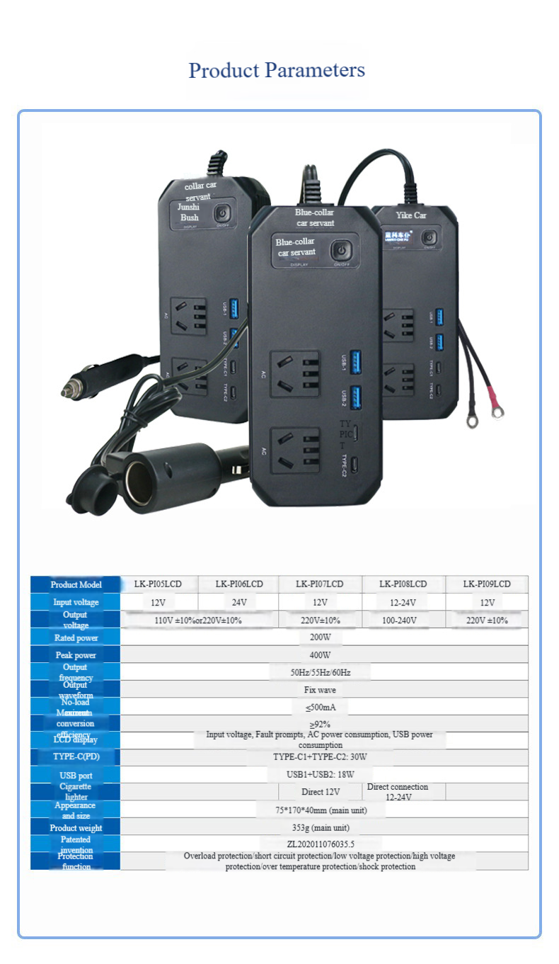 Vehicle-mounted inverter converter plug, 12V power socket, cigarette lighter, car fast-charging inverter "