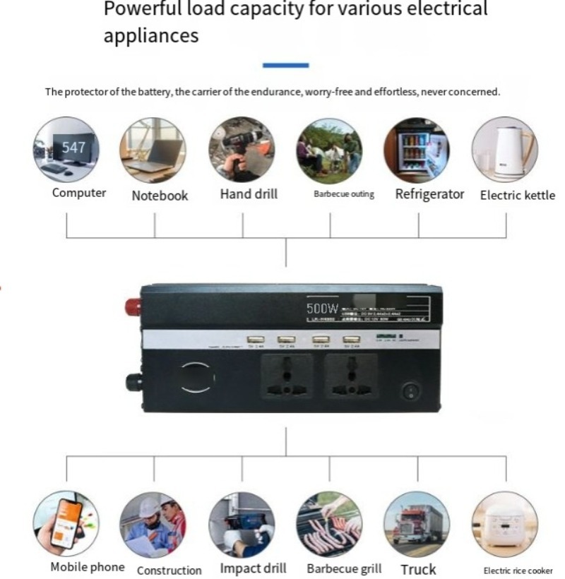 Electric vehicle inverter: 60V to 110/220V; Vehicle battery converter: 500W