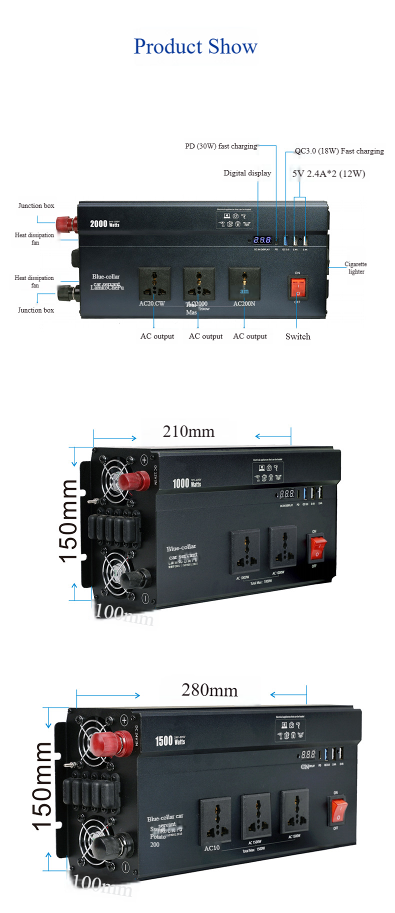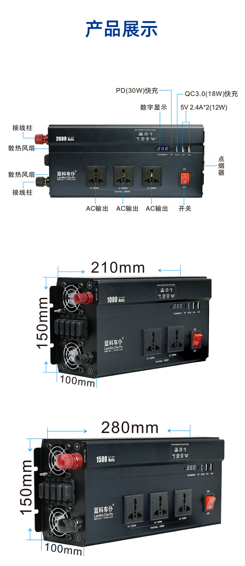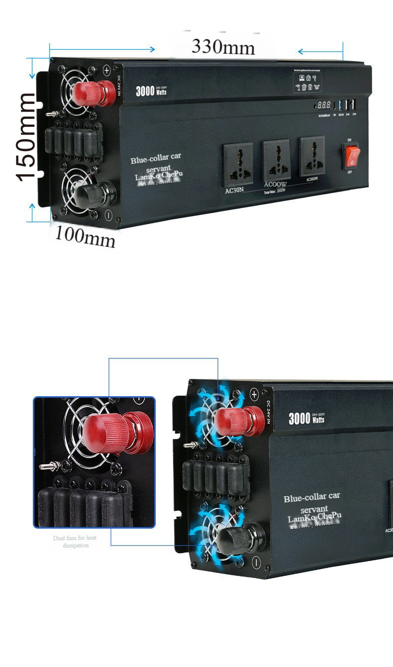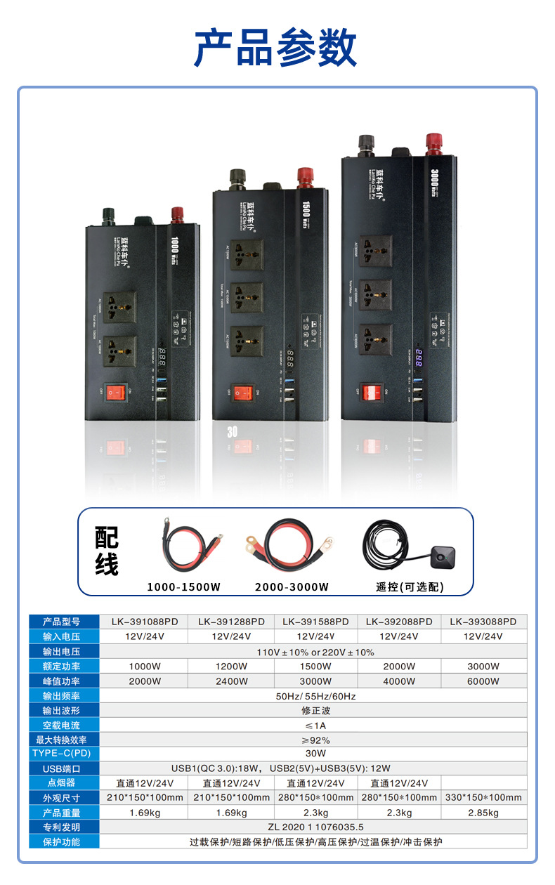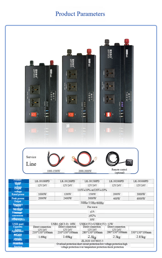 Output voltage 110/220V, output power 1000W, input voltage 12V
