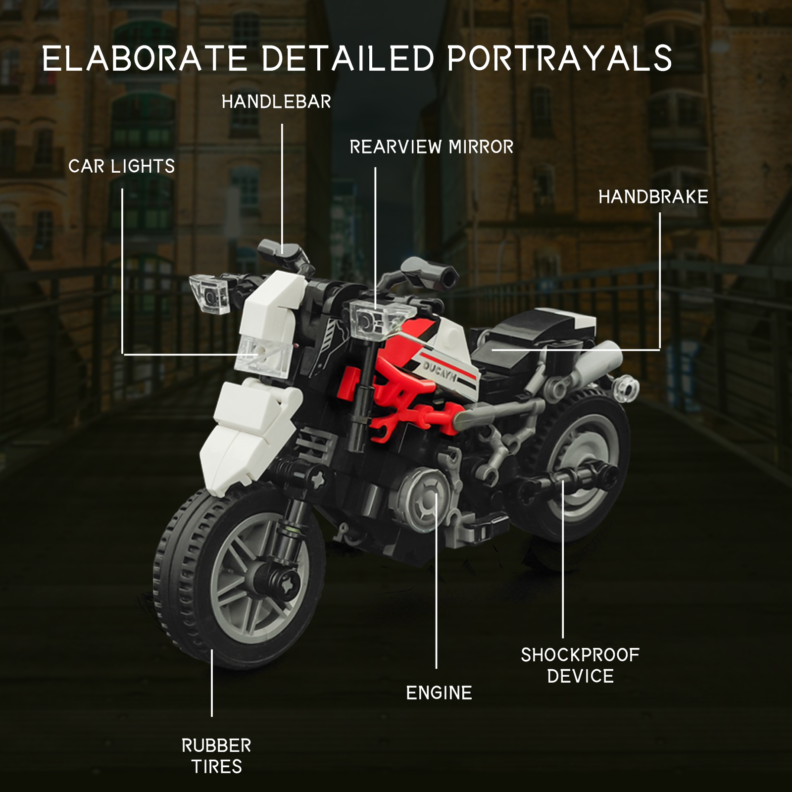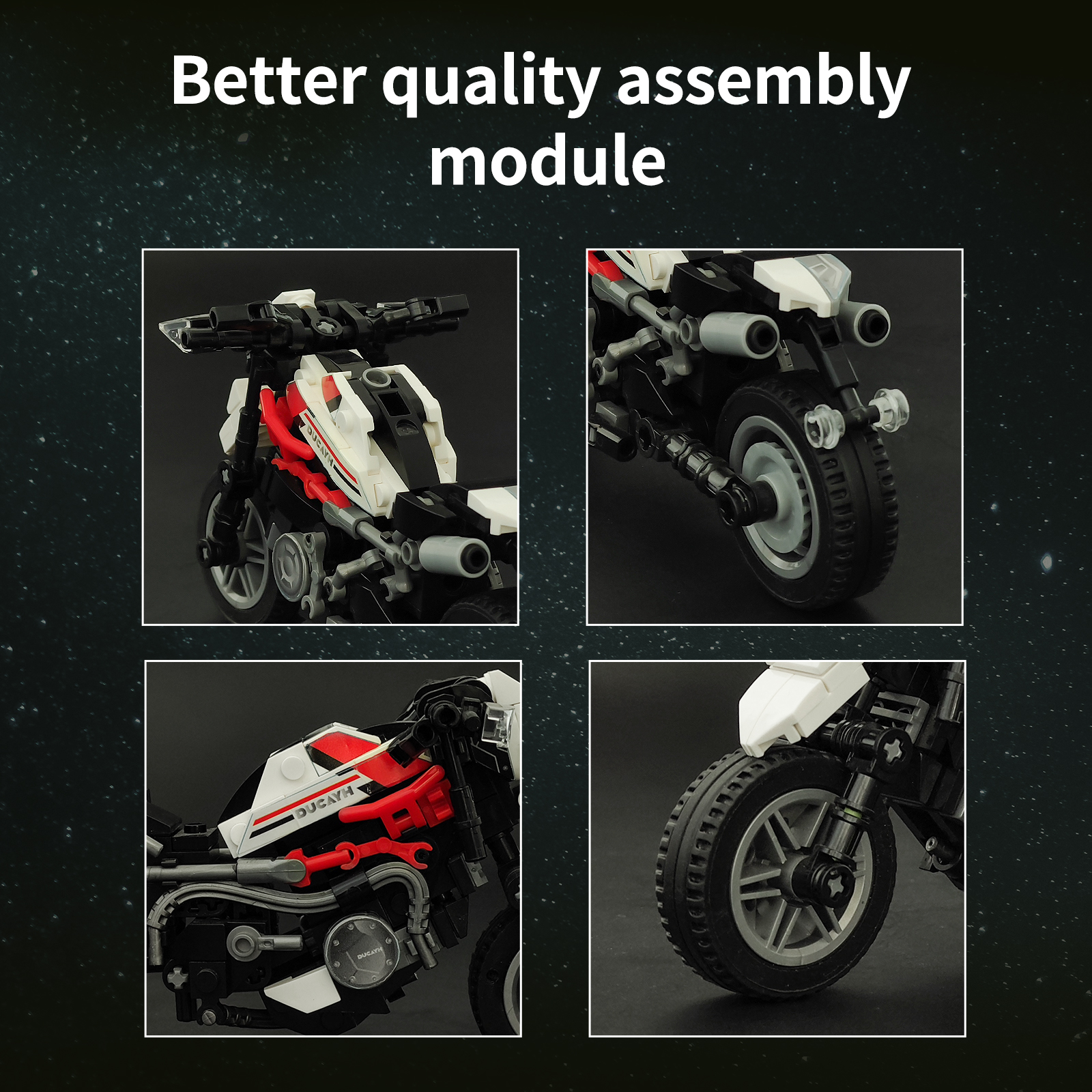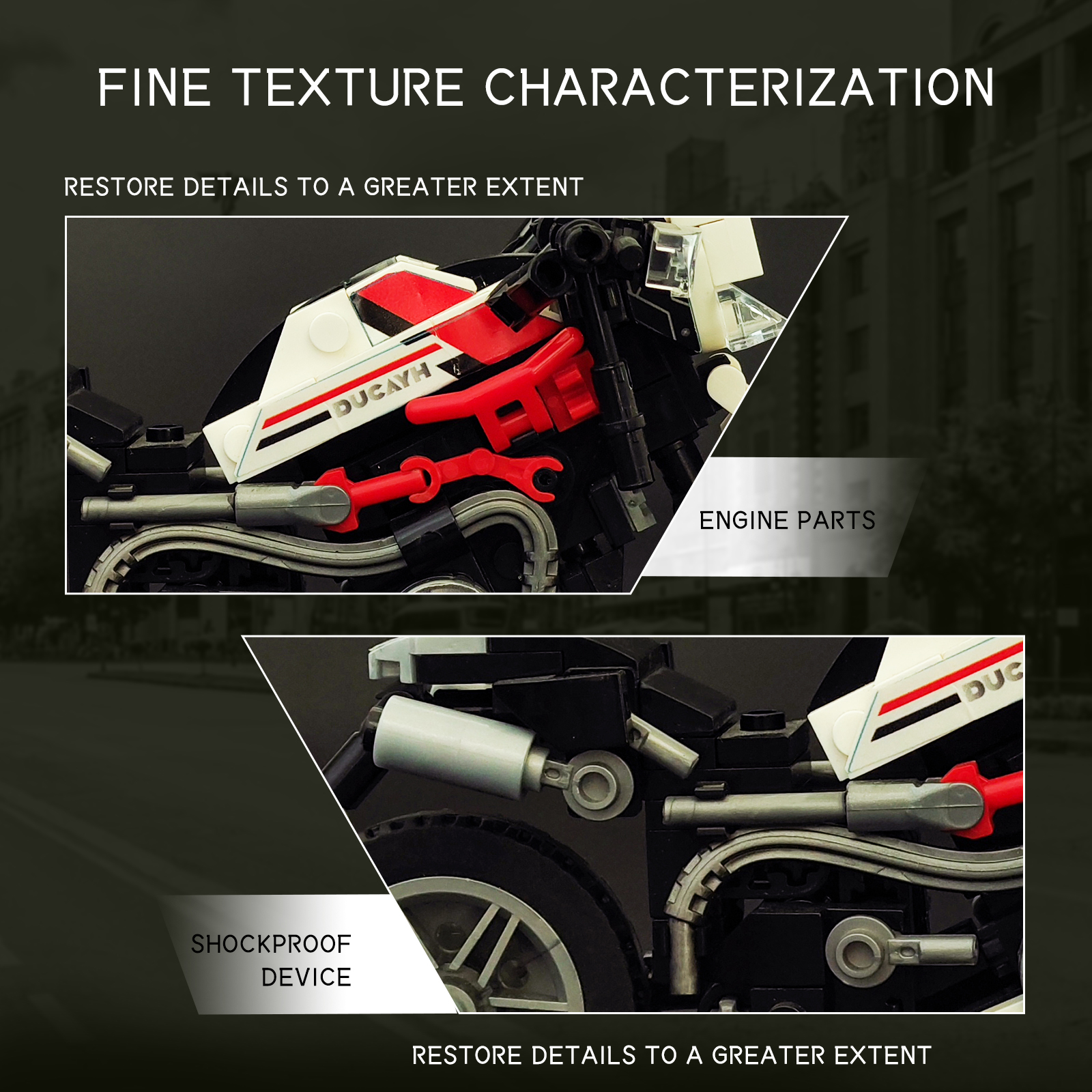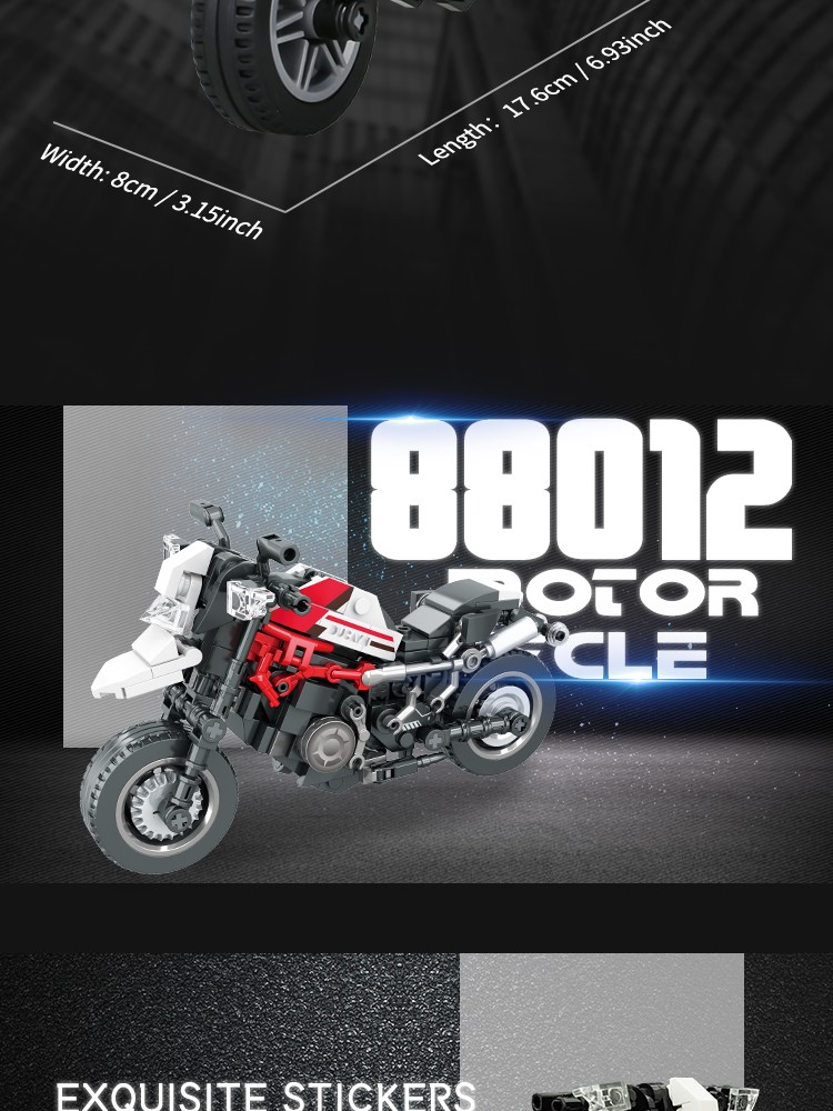 炫酷摩托车造型,精细复刻摩托车的流线型车身特征,车头、车轮等丰富细节,增强趣味性和可玩性,让玩家在动手组装的过程中,仿佛置身于机械世界的魅力之中。