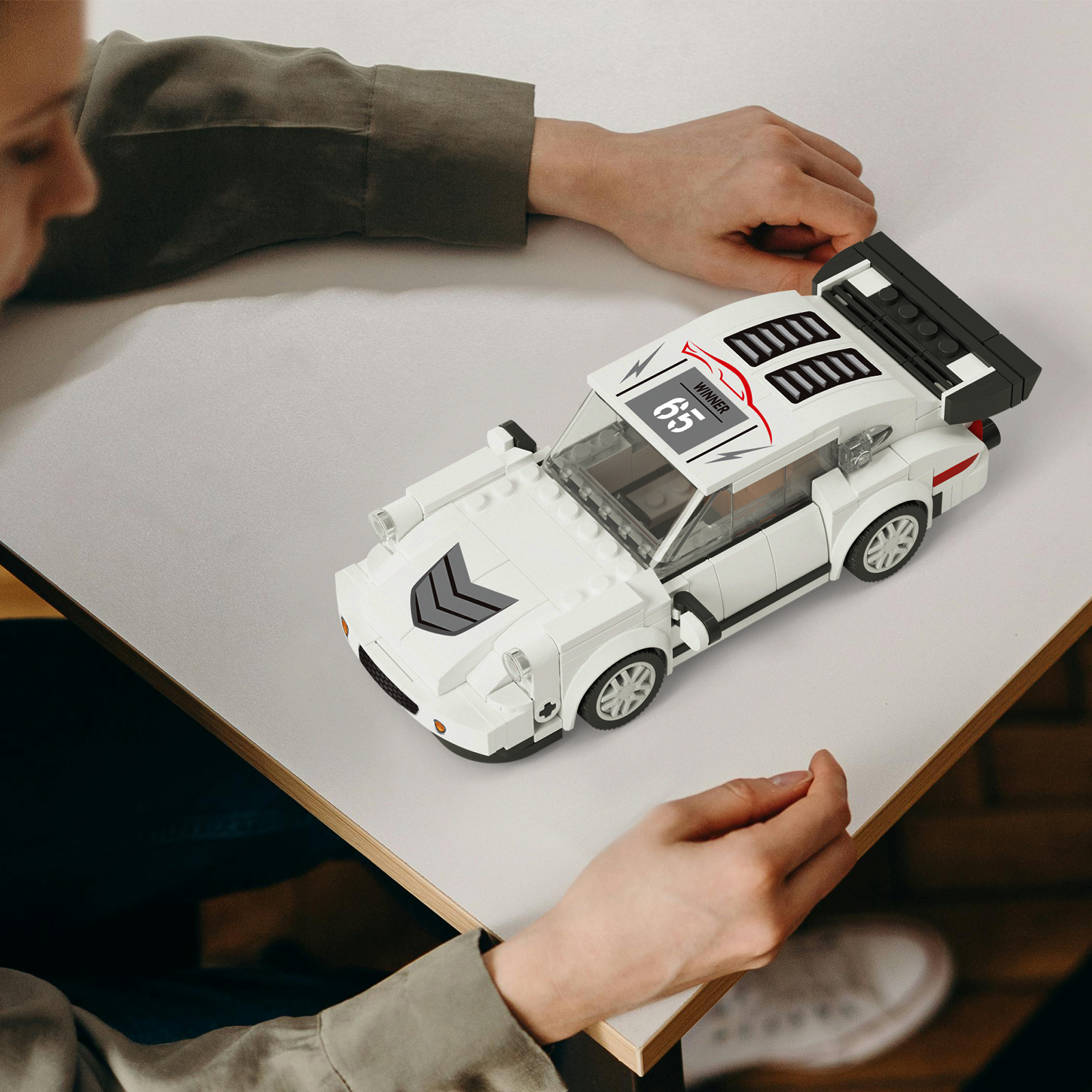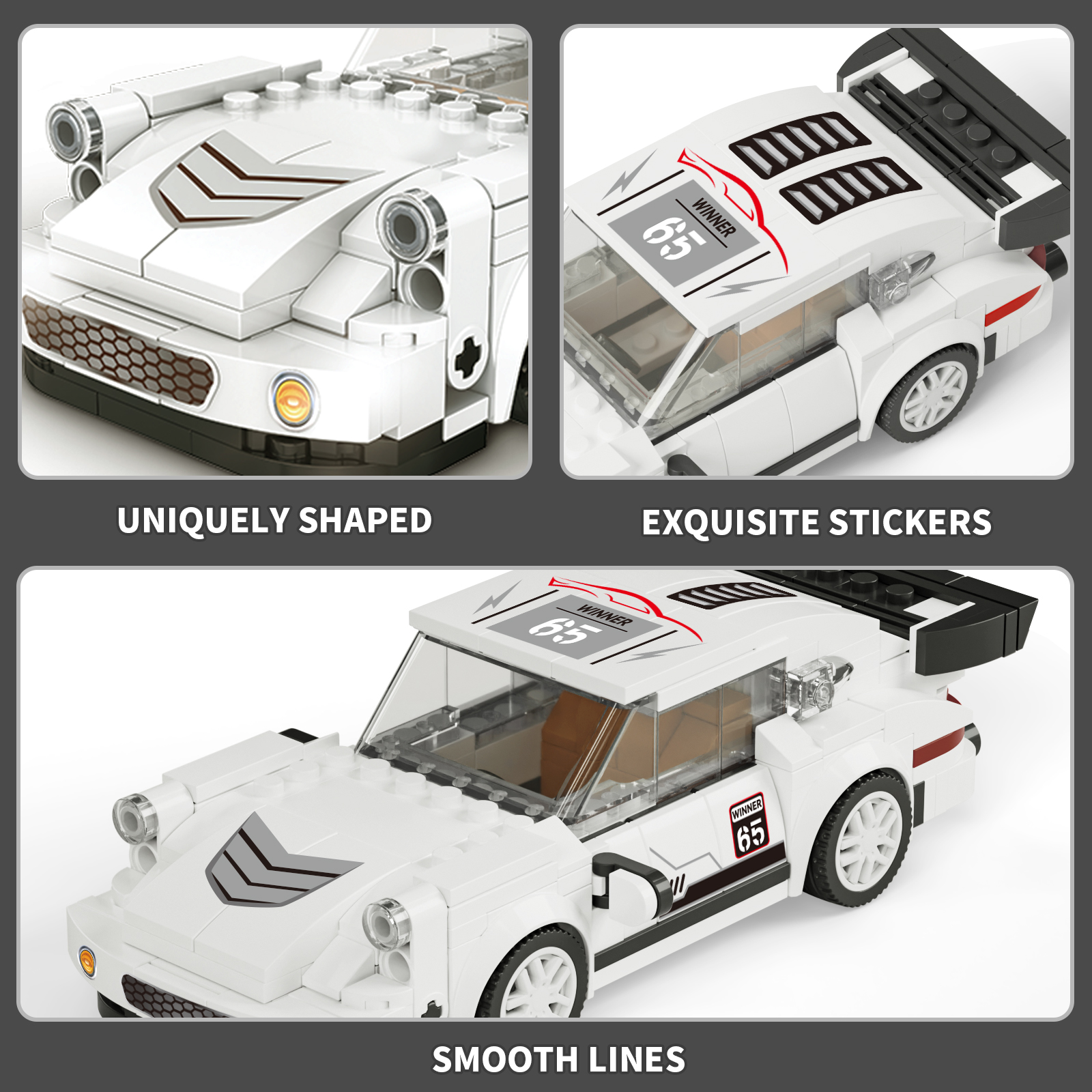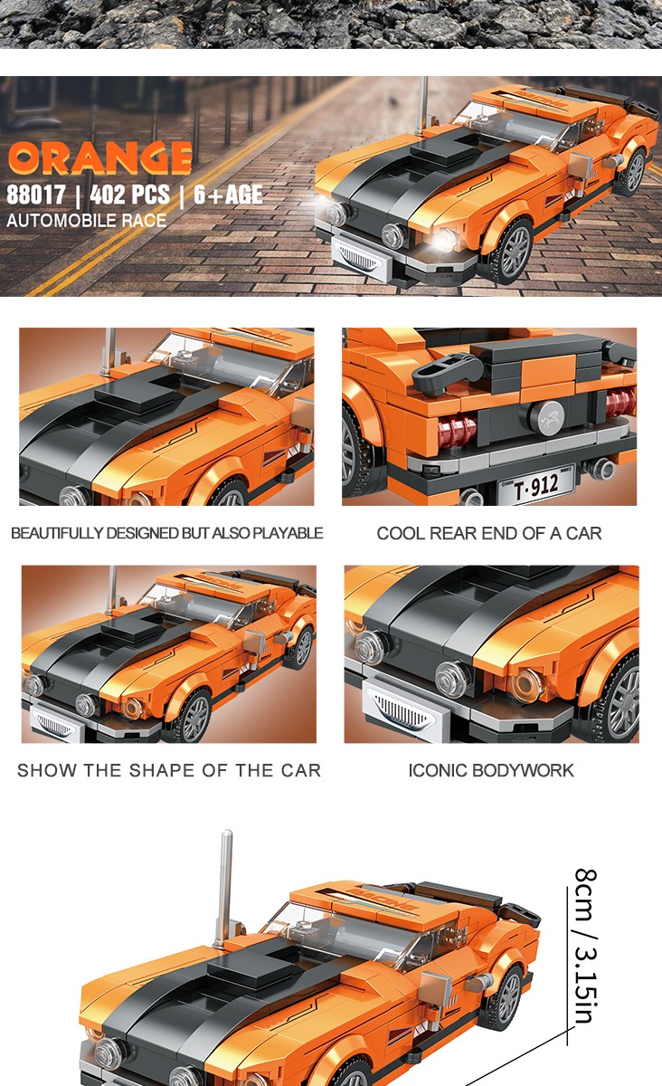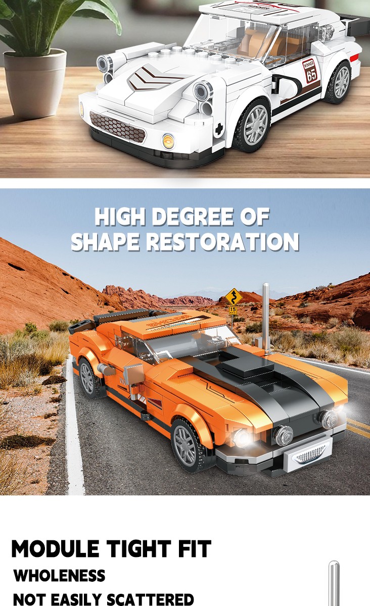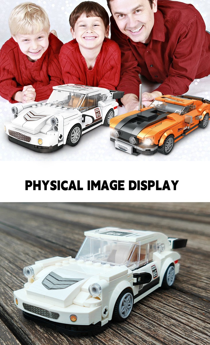 全新积木赛车造型,炫酷外观设计,精细做工每一个细节,仿真尾翼、模拟静态车灯等细节满满是集观赏性与趣味性于一身的趣味之选。