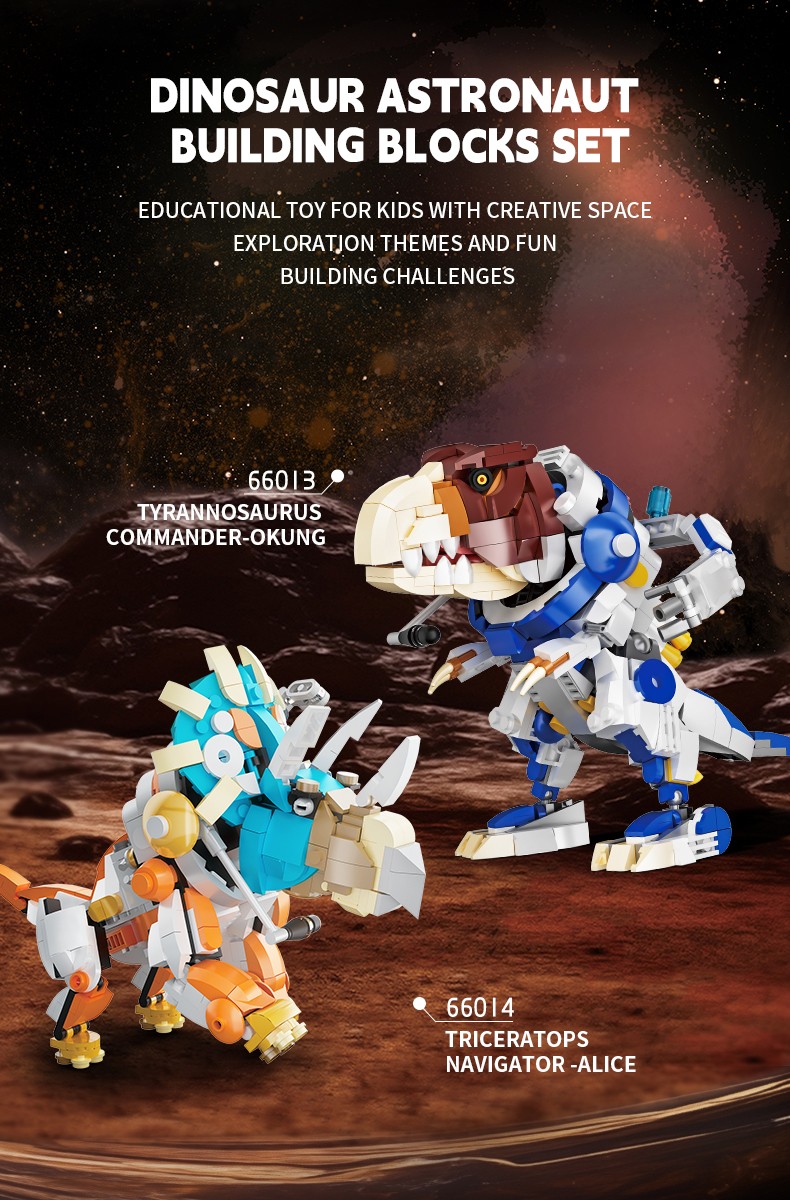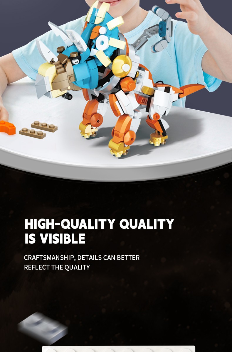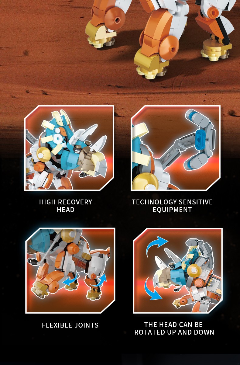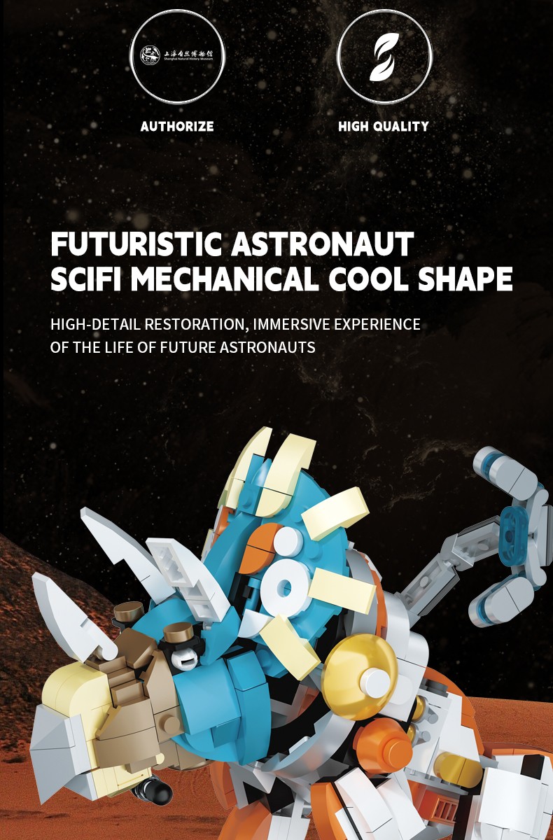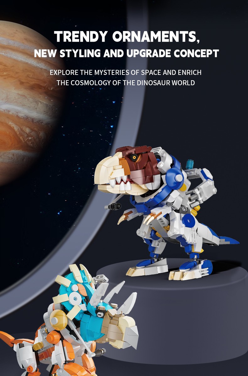 保留恐龙的一些典型外形特征,融入了一些现代宇航员的科技元素,实现多处关节可动,细节逼真,可玩性强,科技感十足。