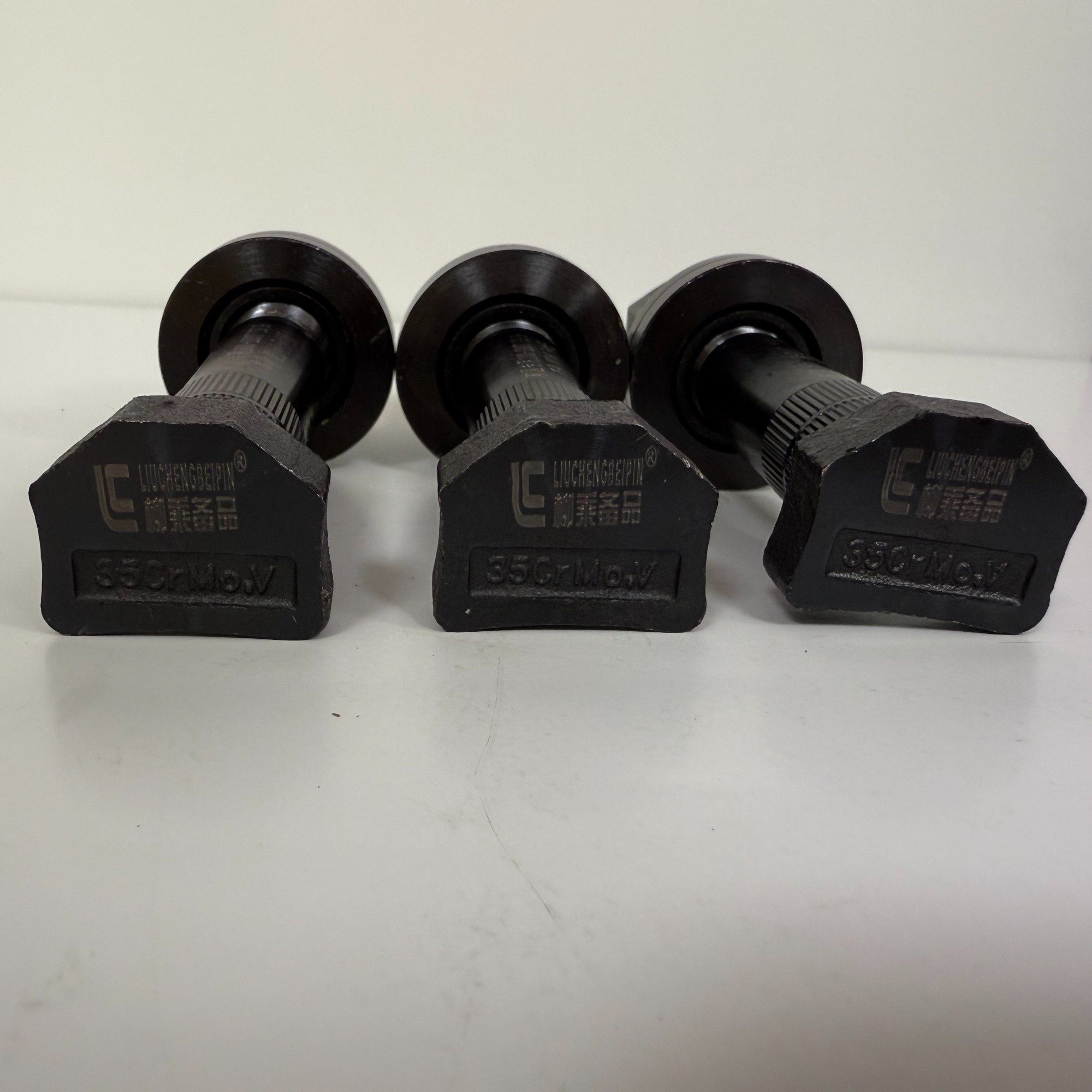 本产品:适用于奔驰,红岩,华菱,江淮格尔发,重汽豪沃,HAOWO,陕汽德龙,矿山工程车,汉德桥后轮螺丝滚花/无花黑金刚M22*145*19.9.防尘帽/组合帽。 性能特性:本品开发采用江荫特刚高强度,专为超重/超载特种工程机械车辆,矿山车辆设计的一款高端后轮罗丝。本品经过超重承载的极端测试。 本品承载重为:150T-200T的装载货物。