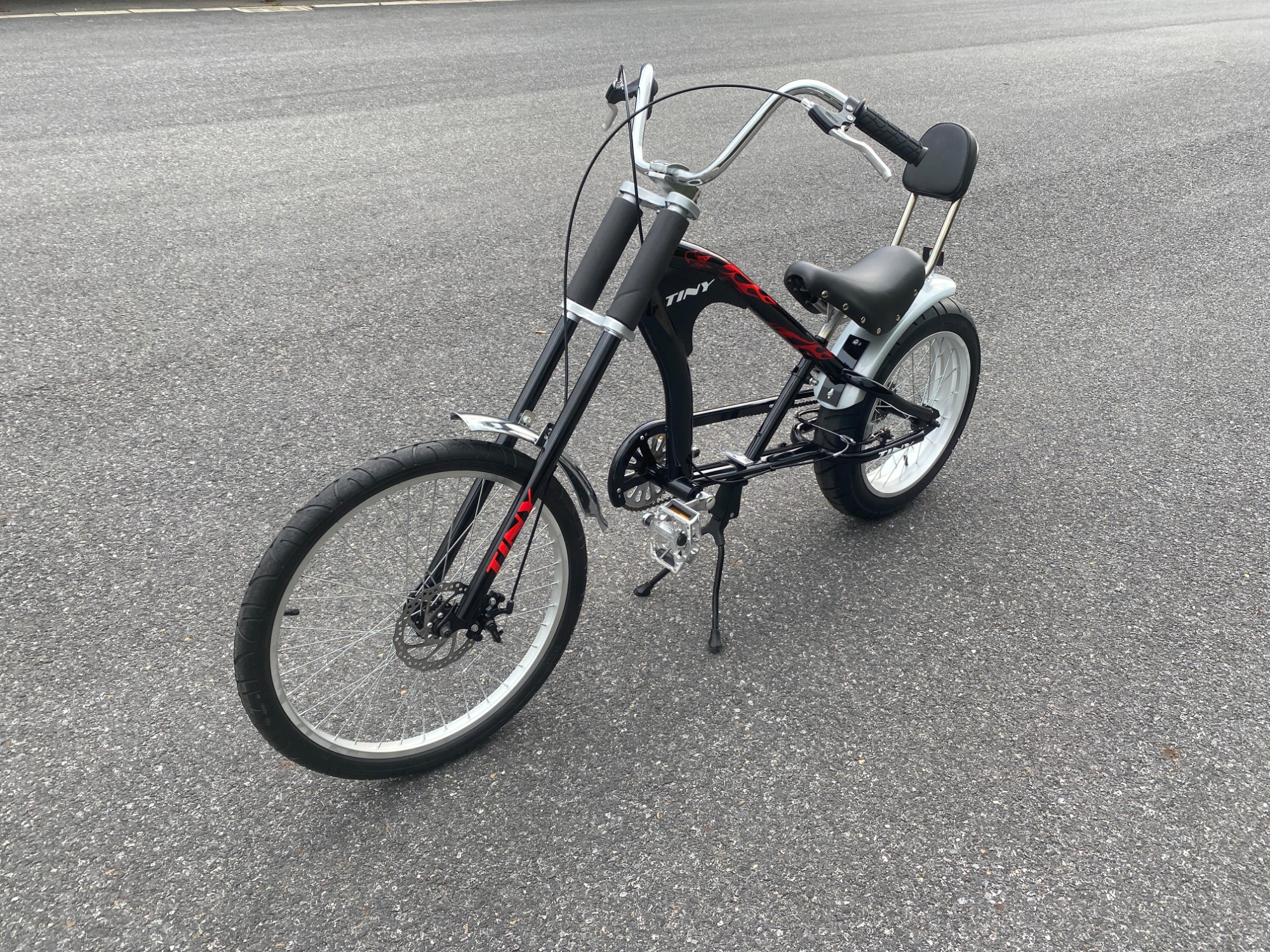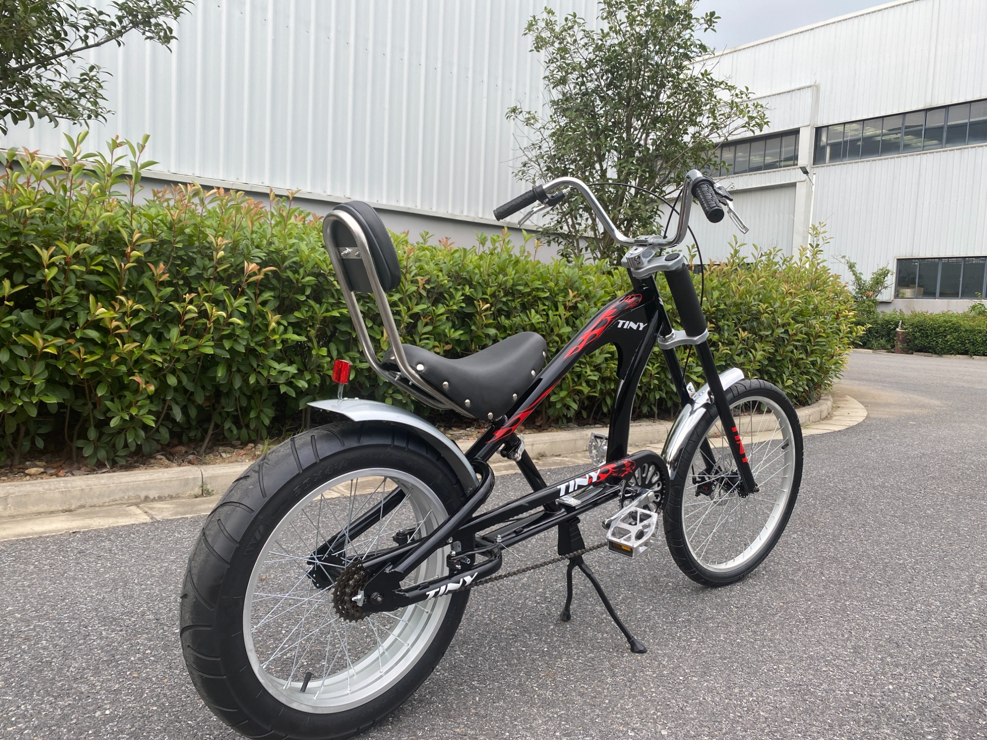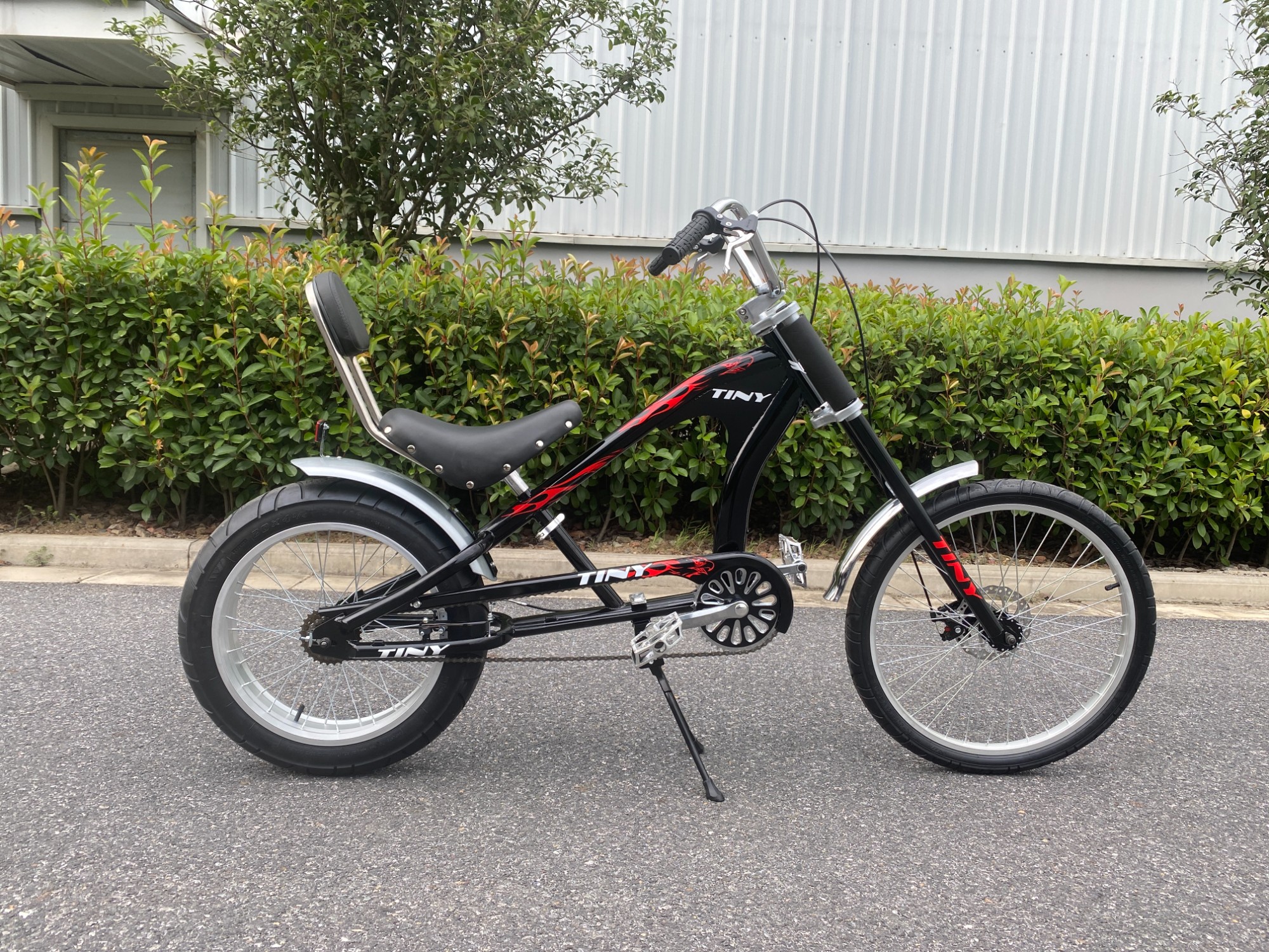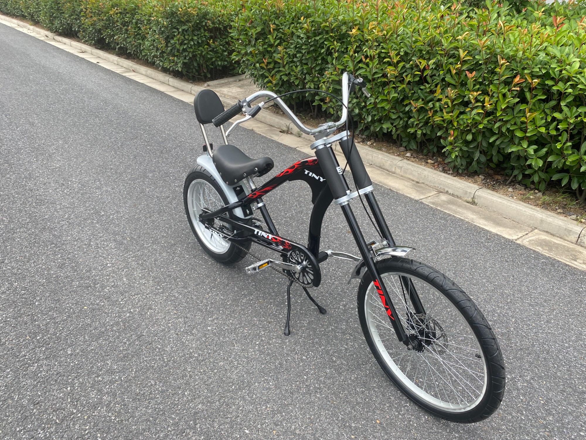 Велосипед TINY Chao Cool Cruiser Wind использует черный и красный цвет для формирования привлекательного внешнего вида, сочетает в себе дизайн в стиле круизного транспортного средства и оснащен широкими шинами и задней спинкой, что не только усиливает ощущение визуального прилива, но и повышает комфорт езды на велосипеде, форма кузова уникальна и подходит для городских ежедневных поездок и досуга сцены, это уникальный инструмент путешествий, который имеет как ценность, так и практичность.